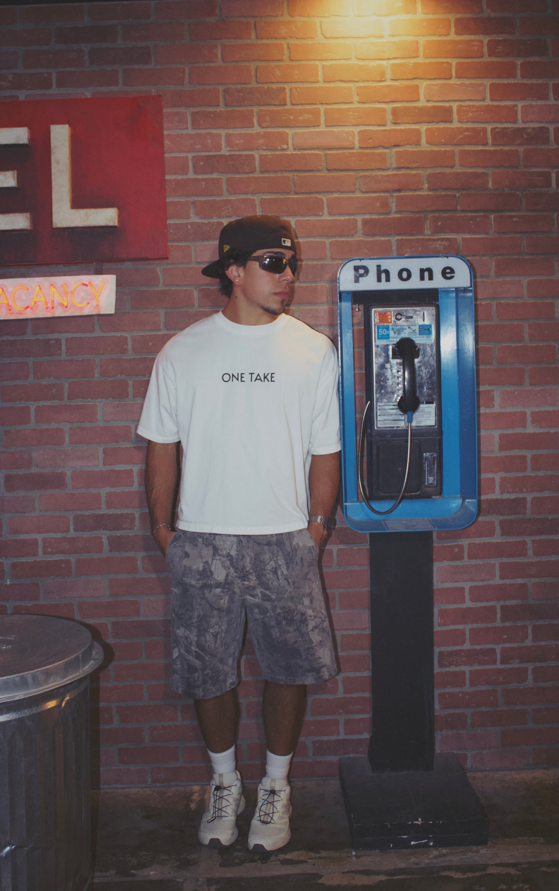 Back: Graffiti-style “One Take” artwork with subtle 01 + EST·2024 details.
